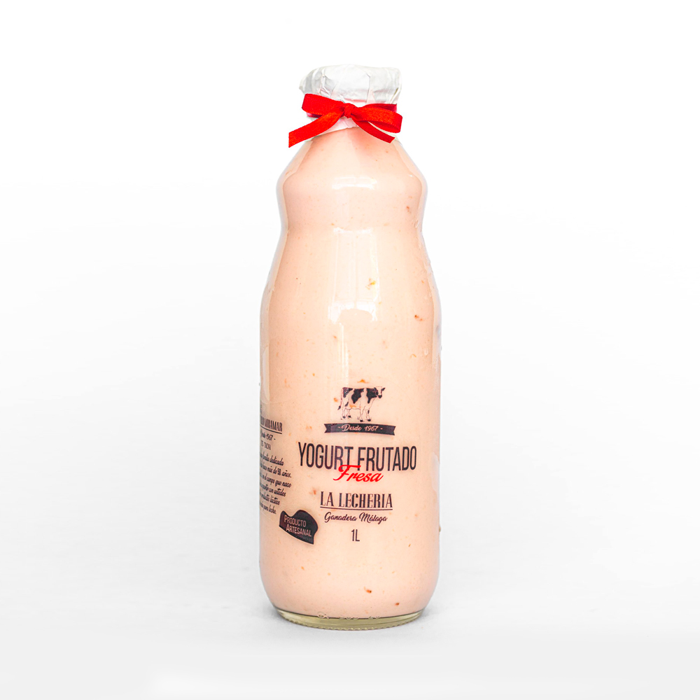- Yogurt probiótico frutado elaborado con leche pasteurizada de nuestras vacas, endulzado con mermelada artesanal de fresa y libre de aditivos químicos.